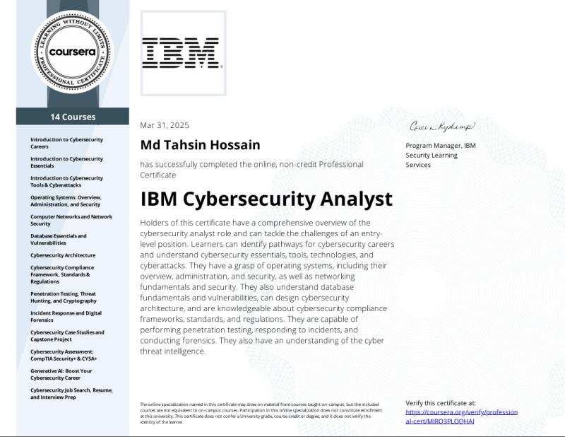 A dedicated cybersecurity enthusiast with a strong focus on defensive security. Passionate about securing digital environments, I continuously learn and stay updated with the latest trends and practices in the field. My goal is to contribute meaningfully to the cybersecurity landscape, strengthening digital infrastructures and protecting against emerging threats. I am committed to expanding my expertise and making a lasting impact in the ever-evolving field of cybersecurity